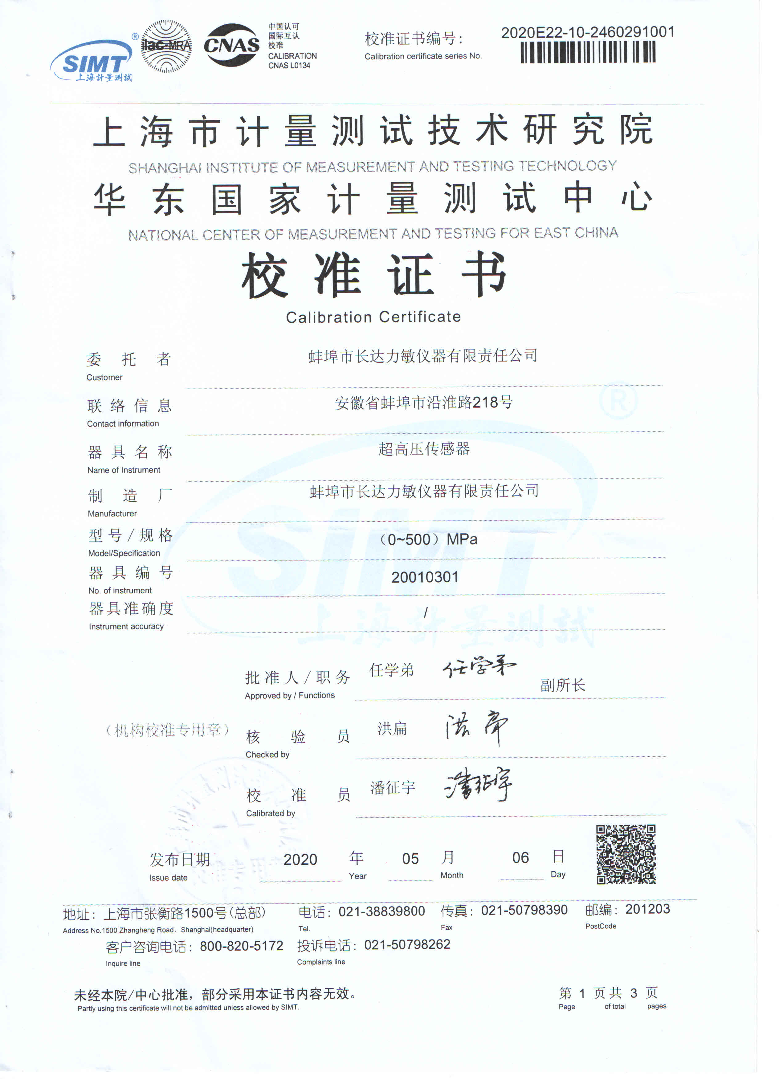 500MPa校準證書