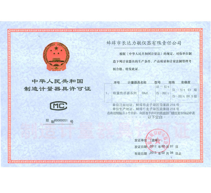 稱重傳感器-制造計(jì)量器具許可證
